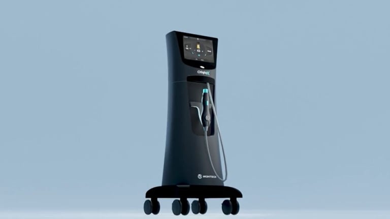 Ultrassom micro e macrofocado de última geração que trata a flacidez e estimula o colágeno, promovendo efeito lifting natural e podendo reduzir gordura localizada, sem cirurgia.